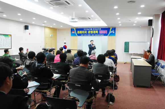 김천시(시장 박보생)는 지난 26일 김천시농업기술센터에서 각국의 자유무역협정이 발효됨에 따라 우리지역농업환경에 맞는 강한농업을 육성하고 인터넷직거래를 통하여 유통비용을 농가소득화하고자 김천노다지장터 입점농가 100명을 대상으로 농산물 전자상거래 홈페이지 운영계획 발표회를 가졌다.