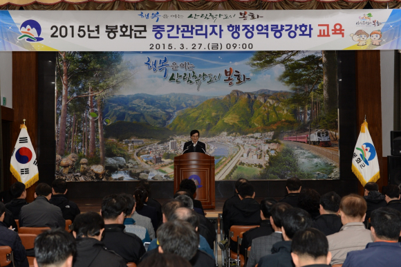 봉화군은 27일(금) 09:00 군청 대회의실에서 이동열 부군수 특강으로 중간관리자(6급 공무원)를 대상으로 지방행정역량강화교육을 실시했다.