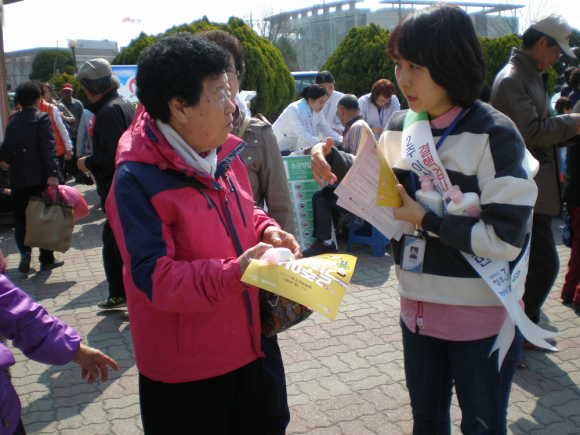 이날 캠페인에는 선산보건소장 이하 보건소 직원 20여명이 참여하여「철저한 발견·치료·관리로 결핵 없는 사회!」라는 슬로건과 함께 선산시외버스터미널을 이용하는 300여명 시민들의 결핵에 대한 관심증대와 인식향상을 도모한다.