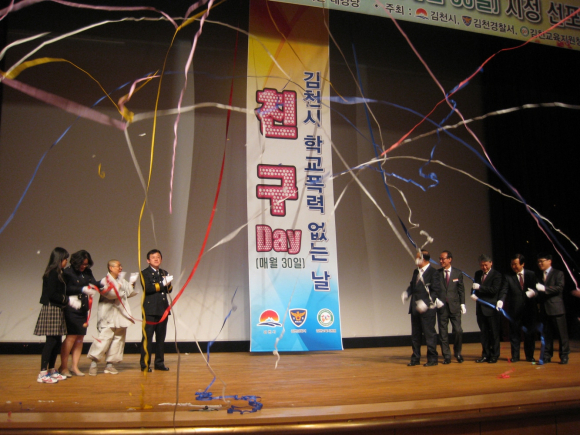 김천시는 3월 30일에 문화예술회관 대강당에서 김천경찰서, 김천교육지원청과 공동으로 ‘김천시 학교폭력 없는 날’「친구Day」선포식을 개최했다.