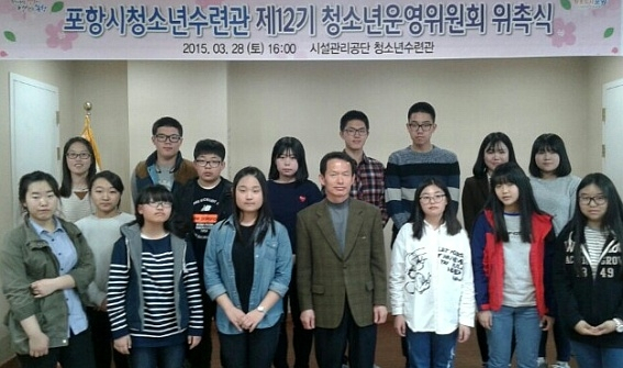 포항시 시설관리공단이 지난 28일 2015년도 청소년수련관 제12기 청소년운영위원회 위원 16명을 선정해 위촉식을 가졌다.
