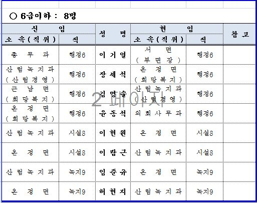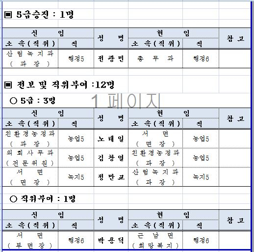 울진군 인사 이동 현황