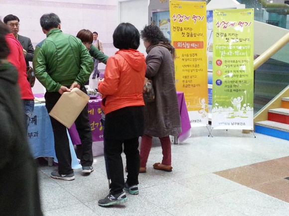 한편, 이날 남구보건소는 휴게음식점 기존 영업자를 대상으로 손 씻기 홍보관 운영과 함께 싱겁게 먹기 운동 범시민 확산을 위한 건강홍보관도 운영했으며, 오는 9일은 동국제강, 10일은 포스코 패밀리 수련원, 21일은 장애인종합복지관, 23일 군부대에서 각각 싱겁게 먹기 건강홍보관과 미각테스트팀을 운영할 계획이다.