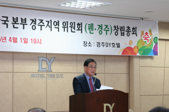 국제펜한국본부 경주지역위원회 창립총회가 4월 1일 19시 경주 DY호텔(전 파크호텔) 회의실에서 열렸다. 국제펜한국본부 지역위원회는 광역지역위원회로 구성되어 활동 중인데, 도시지역위원회는 경주시에 처음으로 창립됐다. 이번 경주지역위원회 창립은 경주의 문학예술이 전국적으로 그만큼 비중이 높다는 것을 의미한다.