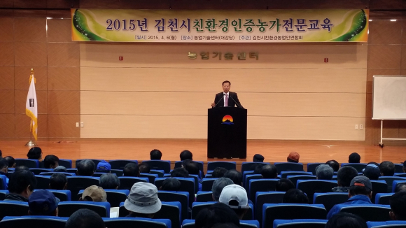 김천시(시장 박보생)는 지난 6일 농업기술센터 대강당에서 친환경농업인 300여명이 참석한 가운데 안전한 농산물 생산을 위한 친환경농업인 전문교육을 실시했다.