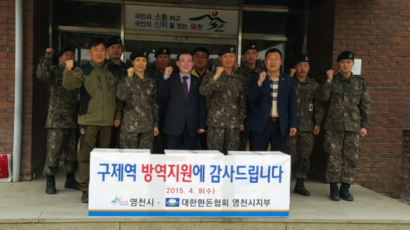 이번에 전달한 물품은 대한한돈협회 영천시지부(지부장 김영춘)에서 기증한 것으로 전달식에는 122연대 2대대장 정영규 중령 및 김선주 농축산과장, 한용호 대한한돈협회 영천시부지부장(한국농업경영인 영천시연합회장 겸임) 등 관계자 10여명이 참석한 가운데 진행됐다.