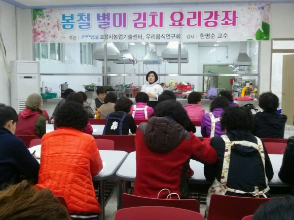 포항시농업기술센터가 육성하는 포항시우리음식연구회(회장 김복희)가 8일부터 22일까지 매주 수요일 3회에 걸쳐 농업기술센터 흥해청사에서 봄철별미김치 요리강좌를 실시한다.