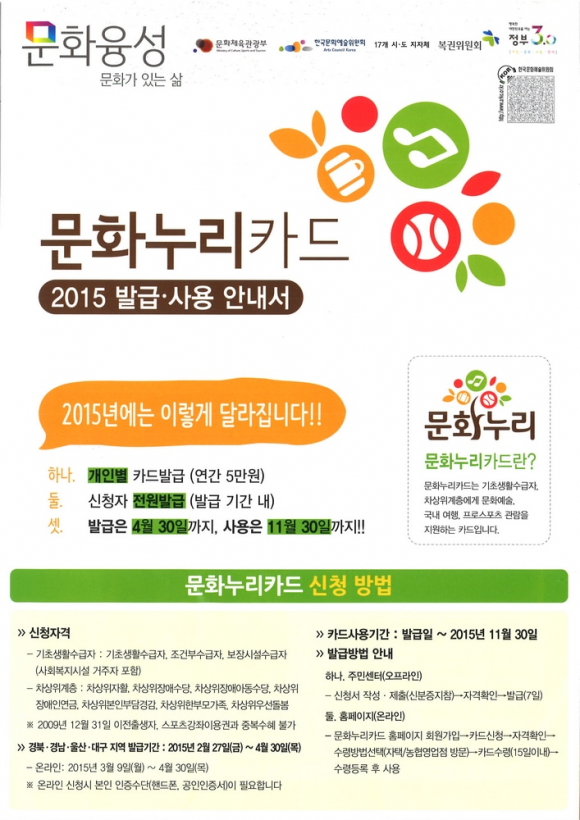 김천시, 문화누리 카드, 4월30일까지 꼭 신청하세요!