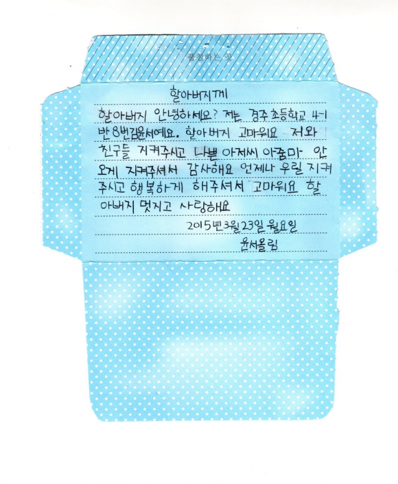 “할아버지, 우리를 지켜주셔서 감사합니다. 사랑해요” 『경주초등 아동안전지킴이 김광치 어르신, 고사리손으로 쓴 감사의 손편지 받아 감동 훈훈, 경주서장 감사장 수여』