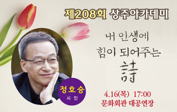 상주시는 오는 16일 오후 5시 상주문화회관 대공연장에서 ‘수선화에게’ 로 유명한 정호승 시인을 초청, 제208회 상주아카데미를 개최한다.