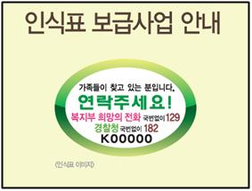 치매환자 인식표 보급사업은 관내 거주하는 재가 치매환자 및 배회가 가능한 어르신을 모시고 있는 가정을 대상으로 보건복지부 중앙치매센터와 경찰청이 연계해 실종 예방 인식표를 보급해 조속한 귀가를 지원하는 것으로, 치매환자의 관리 및 노인 안전을 위한 사회 안전망을 구축하기 위해 실시된다. 현재 관내 100명의 치매환자가 인식표를 발급받아 사용 중에 있다.
