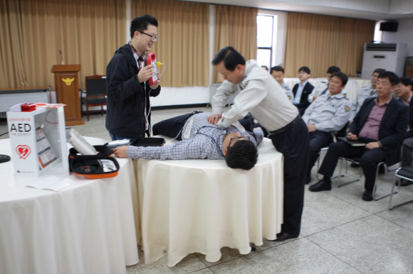경주경찰서는 17일 도내경찰서 중 최초로 경찰서 내에서 심장 기능이 정지하거나 호흡이 멈추는 등 응급상황때 사용할 수 있는 자동심장충격기(자동제세동기)를 설치, 각 과장 및 계·팀장을 상대로 사용법 및 심폐소생술 교육을 실시했다. 자동심장충격기(자동제세동기)는 경찰서 현관앞에 설치하여 누구나 손쉽게 이용할 수 있도록 했다
