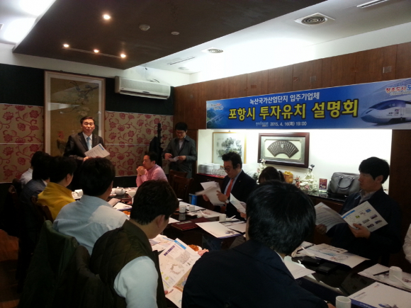 포항시는 16일 한국산업단지공단 부산지사에서 녹산국가산업단지 입주기업을 대상으로 투자유치 활동을 전개했다.