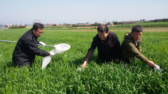 포항시농업기술센터는 따뜻한 봄철 보리이삭이 필 무렵을 맞아 병해충 예찰사업의 일환으로 기온상승으로 인한 볏과 작물의 불청객으로 알려진 애멸구가 농경지에 얼마나 서식하고 있는지 현장채집 조사를 실시했다.