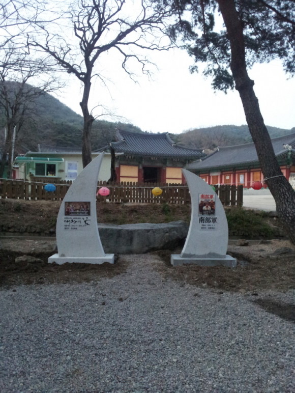 - 보경사 사찰 입구에 드라마 ‘대왕의 꿈’, 영화 ‘남부군’ 촬영기념 조형물 설치