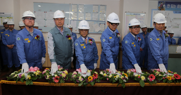 소결공장 통합운전실에서 진행한 이날 행사에는 김학동 포항제철소장을 비롯해 이주형 근로자위원 대표, 김동철 포스코건설 전무 등 포스코그룹 임직원 70여 명이 참석해 설비 재가동을 기념하는 스위칭(switching) 퍼포먼스를 한 뒤 2소결 현장 설비를 꼼꼼히 살폈다.