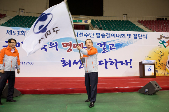 이날 행사에는 구미시체육회장인 남유진 시장을 비롯해 국회의원,기관단체장, 도·시의원, 서포터즈, 학교장, 체육회 임원 및 선수 500여명이 참석하였으며, 지난해 문경의 제52회 도민체전에서의 준우승의 성적을 뛰어 넘어 올해에는 종합우승 탈환을 다짐하며 필승결의의 시간을 가졌다.