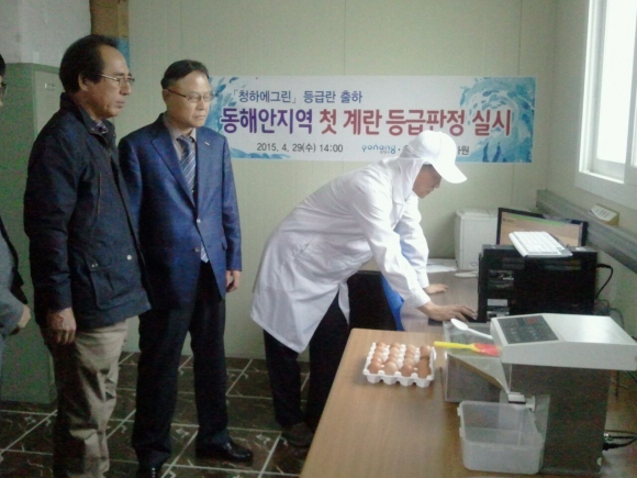 동해안에서는 처음으로 포항 ‘청하에그린’ 농장에서 생산된 계란이 29일 축산물품질평가원로부터 ‘계란등급 판정’을 받았다.
