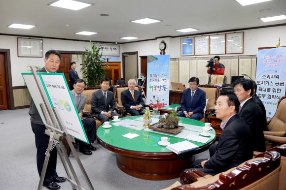안동시(시장 권영세)와 대성청정에너지(주)(대표 김한배)는 4월 29일(수) 오후 4시 시장실에서 관계자 10여명이 참석한 가운데 풍산읍 소재지 도시가스 공급사업 추진을 위한 업무협약을 체결했다.