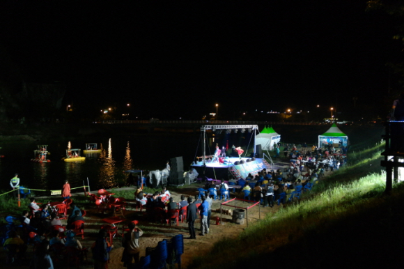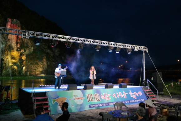 올해 17회를 맞이한 문경전통찻사발축제의 특별 야간 행사인 ‘문경 밤 사랑 축제’라는 신규 프로그램이 1일부터 본격 시작됐다. ‘문경 밤 사랑 축제’는 문경시와 문경전통찻사발축제추진위원회(위원장 김억주), 재단법인 문경축제관광조직위원회가 4년째 최우수축제의 명성을 얻고 있는 문경전통찻사발축제에 걸맞도록 그동안 아쉬운 점으로 지적됐던 야간 프로그램에의 아쉬움을 해소하고 ‘지역축제 = 지역경제 활성화’ 라는 취지를 실질적으로 살리고자 기획된 행사다. 주말인 2일 문경새재 전통찻사발축제장을 찾은 많은 상춘객들이 낮에는 오픈 세트장에서 개최 중인 찻사발축제를 즐기고 저녁에는 발길을 문경온천지구로 옮겨 조령천 인공폭포 앞에 마련된 특설무대에서 흥겨움을 이어갔다. 오후 6시부터 펼쳐지는 ‘문경 밤 사랑 축제’는 주로 7080 분위기를 느낄 수 있는 통기타와 포크송, 올드 팝송, 재즈, 라틴 음악, 피아노 경음악 외에도 라틴 댄스, 비보이 댄스, 색소폰 합주, 타악 합주 등 다양한 장르로 꾸며졌다. 낮의 더위를 식히기 좋은 초저녁에 열린 ‘문경 밤 사랑 축제’ 첫 날에는 500여명의 관광객과 주민들이 참가했으며 인근 온천지구 상가에서도 손님들이 북적였다. 화려한 조명과 함께 조령천과 인공암장 등을 배경으로 만들어진 특설무대 좌우에는 2015 세계 물포럼 행사의 만찬주로 선정돼 다시 한 번 세인의 주목을 받은 문경 오미로제 프리미엄 와인과 오미자를 원료로 하는 문경 브루어리(Brewery) 오미자생맥주가 저렴한 가격으로 제공되어 공연을 즐기는 관람객들에게 별미의 즐거움을 선사했다.