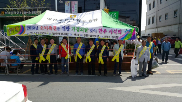 영천시(시장 김영석)와 전국한우협회 영천시지부(지부장 조규수)는 지난 2일 영천공설시장 농협시지부앞에서 제12회 영천보현산별빛축제와 더불어 많은 시민들의 참여 속에 한우고기 소비촉진 행사를 가졌다.