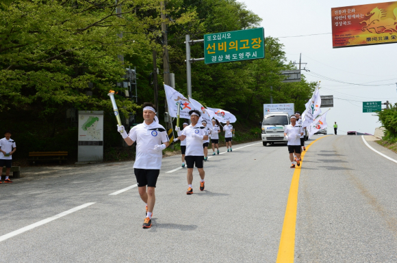 소백산 연화봉과 경주 토함산에서 채화된 성화는 차량으로 21개 구간을 거친 뒤 영주시의회에서 합화한 후 영주시내 9개 구간에서 132명의 봉송주자들의 릴레이로 영주시청에 안치됐다.