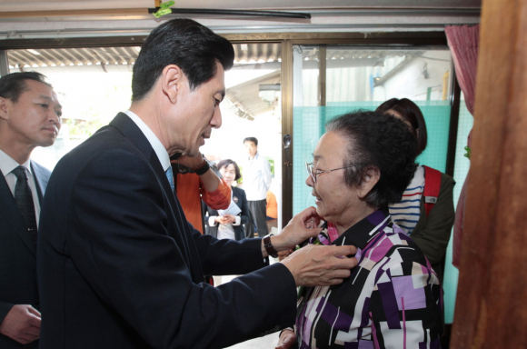 이강덕 시장은 제43회 어버이날을 하루 앞둔 7일 포항시 북구 죽도동에서 홀로 사는 김정자 할머니(가명, 80세)를 찾아 카네이션을 달아드렸다.