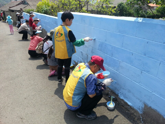 포항시 공무원가족자원봉사단 30여명은 지난 9일 남구 장기면 창지리에서 ‘벽화 그리기’ 재능기부 봉사활동을 실시했다.