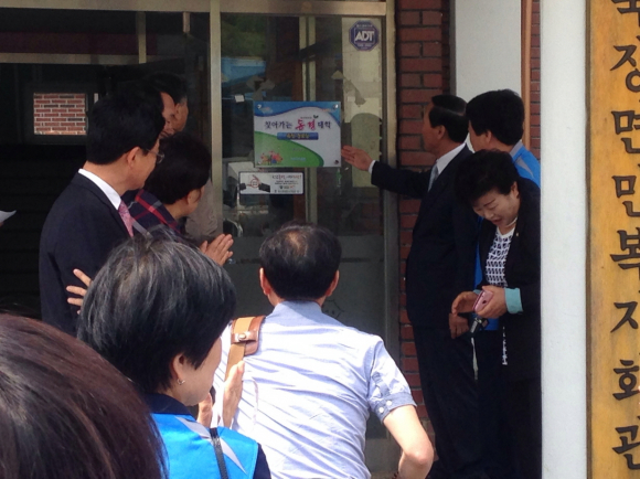 포항시가 12일 2015년 찾아가는 동경(동네 경로당)대학으로 지정된 북구 죽장면 죽장경로당에서 마을 어르신 등 50여명이 참석한 가운데 ‘2015년 찾아가는 동경대학’ 현판 제막식 및 교육개강식을 가졌다.