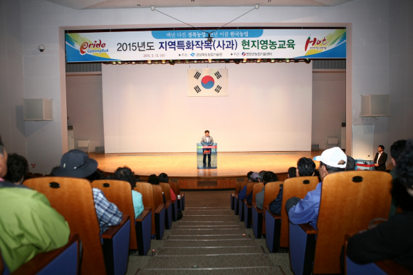 경상북도농업기술원이 주최하고 영양군농업기술센터가 주관하는 지역특화작목 사과 교육은 사과 재배 관리 중심으로 국립원예특작과학원 사과시험장 송양익박사를 강사로 초빙하여 고품질 사과 결실관리핵심기술에 대한 교육하였으며 사과농가의 현장 애로기술에 대한 질의응답으로 높은 교육 열기를 느낄 수 있었다.