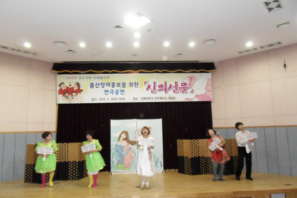 이번 공연은 출산장려홍보사업의 일환으로 최근 저출산 문제가 심각한 사회문제로 부각됨에 따라 예비부모가 될 대학생들에게 저출산 문제의 중요성과 파급영향에 대한 심각성을 깊이 인식시키고, 출산장려 사회분위기 조성을 위해 경상북도의 후원으로 이뤄지게 됐다.