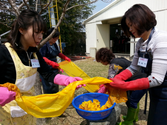 지난 4월 2일 개강해 매주 목요일 10회에 걸쳐 운영되는 천연염색 기초과정에는 현재 27명의 여성들이 수강하고 있으며, 기초과정을 이수한 6월 중순부터 관련 자격증 취득을 위한 전문 과정으로 이어지게 된다. 산천초목들의 잎이나 꽃, 열매와 부산물이 가진 색소를 우려내어 천이나 가죽 등에 물을 들이는 천연염색은 최근 친환경, 힐링 트렌드와 부합하며 다양한 색상과 문양으로 높은 예술성을 표현할 수 있어 고부가 문화상품으로 개발하는데 매우 적합하다.