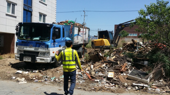 이날 환경정비에는 청소과 환경미화원, 폐기물 처리업체 등 15명과 차량 2대, 중장비 1대가 동원돼 대형폐기물과 생활쓰레기 등을 수거했다.