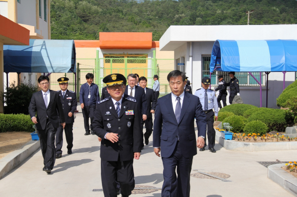 대구고등검찰청 김경수 대구고검장이 20일(수) 경북북부제1교도소(소장 김안식)를 방문했다. 이 날 방문은 유관기관간 업무현안에 대해 서로 공유하고, 발전방향을 모색하며, 교정시설 운영현황 및 애로사항 등을 청취하기 위해 이루어졌으며, 업무현황 보고, 수용동·작업장 시찰, 교회당·수용자 합창공연 관람 및 경북북부 4개 교정기관장과의 환담으로 진행되었다.