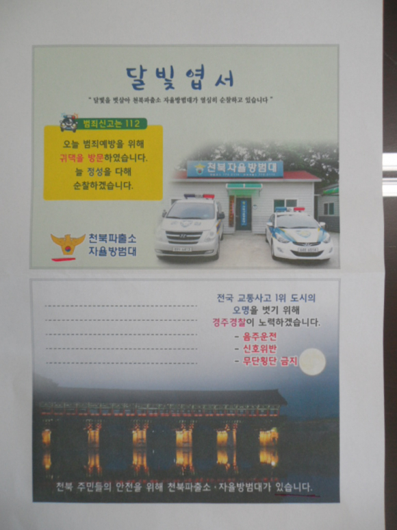 경주 천북파출소, 자율방범대의 ‘달빛엽서’를 아시나요?