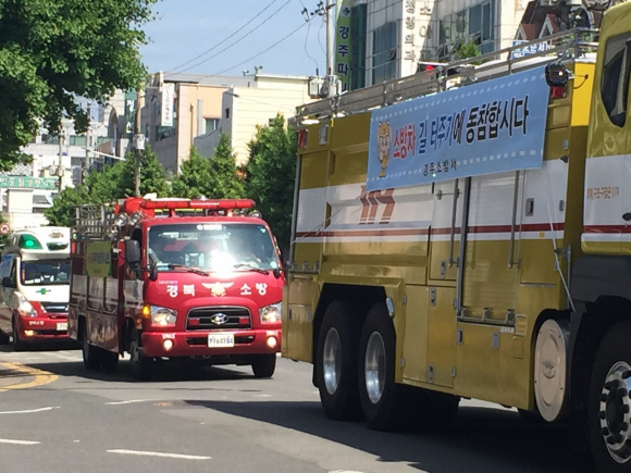 경주소방서, 소방차 길터주기 도민참여 훈련 실시
