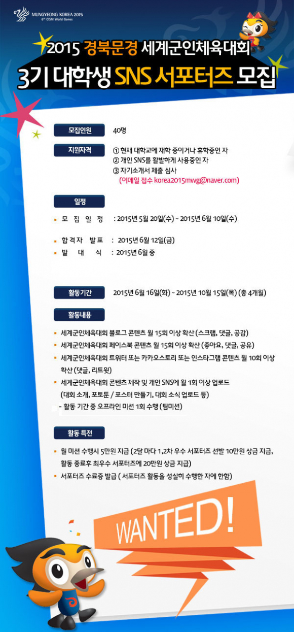 2015경북문경 세계군인체육대회 제3기 대학생SNS서포터즈 모집