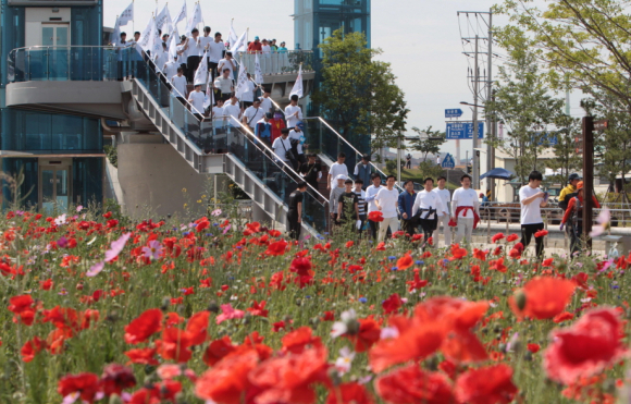 오전 9시부터 시작된 식전공연을 시작으로 전 구간 완주 7.8km로 해도공원에서 포항운하관을 거쳐 동빈큰다리에서 반환하여 다시 해도공원으로 돌아오는 2시간 코스를 가족단위, 단체단위로 참가하여 푸른 오월을 만끽하는 하루였다.
