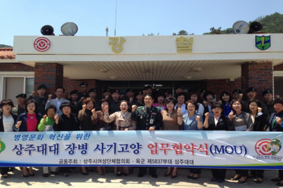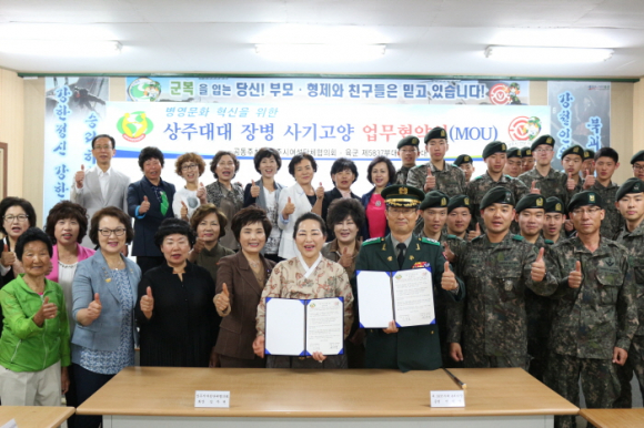 |  | | | ⓒ GBN 경북방송 | | 상주시 여성단체협의회(회장 임주원)와 제5837부대 4대대(대대장 변해영)는 22일 제5837부대 4대대 안보교육관에서 임주원 여성단체협의회장, 변해영 대대장 등 관계자 40명이 참석한 가운데 국군장병들의 사기진작을 위한 MOU를 체결했다.