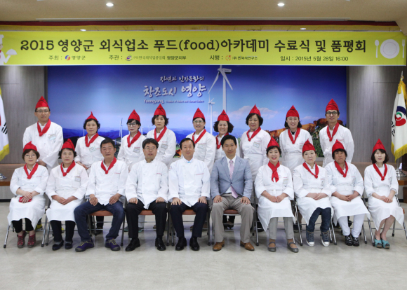 영양군은 28일 영양군청 대회의실에서 외식업소 푸드(FOOD) 아카데미 강좌 수료생을 비롯하여 권영택 영양군수와 김시홍 영양군 의회 의장 및 영양군의회 의원, 실·과·소장이 참석한 가운데 「2015. 외식업소 푸드(FOOD) 아카데미 강좌」수료식을 개최하였다.