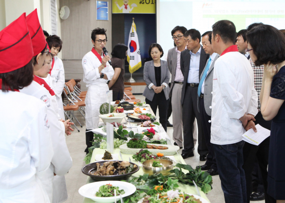 「2015. 외식업소 푸드(FOOD) 아카데미 강좌」는 변화하는 외식산업의 트렌드에 맞춰 영양지역 외식업소의 발전과 경쟁력 강화를 목적으로 시행하였으며, 본 과정 참가 외식업소를 대상으로 경영개선 및 친절서비스 향상, 조리스킬 교육 및 영양지역 특산물인 산나물을 활용한 요리강좌 등의 내용으로 지난 4월 21일 개강식을 시작으로 5. 27.까지 총 10회에 걸쳐 강좌를 실시하였다.