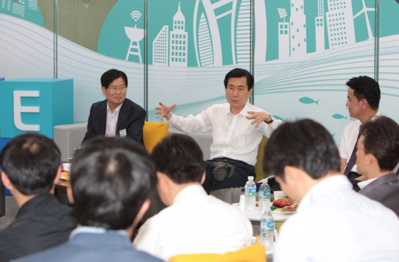 이강덕 포항시장이 지난 29일 포항테크노파크 입주기업, 포스코/포항창조경제혁신센터 입주기업들과「중소벤처기업이 지역의 미래다」라는 주제로 세 번째 희망데이트를 가졌다.