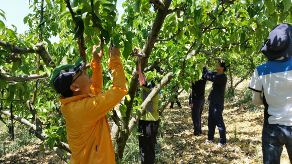29일 실시한 농촌일손돕기에는 평소 일손이 부족하여 어려움을 겪고 있는 농가를 위하여 종합민원처리과 직원 15여명이 어모면에 위치한 이모씨 농가의 배 과수원 작업을 도왔다.