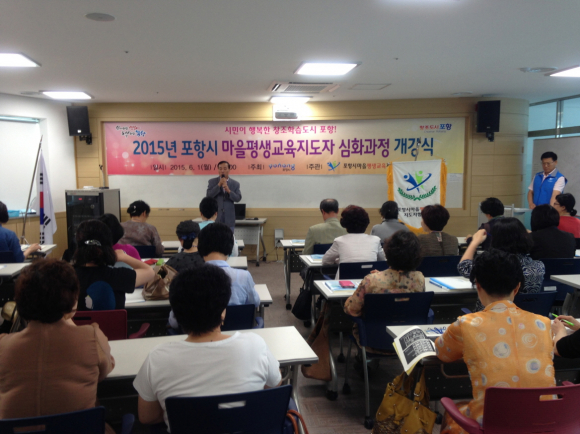 포항시가 1일 평생학습원 3층 강의실에서 40여명의 수강생을 대상으로 ‘2015년 포항시 마을평생교육지도자 심화과정’ 개강식을 가졌다.