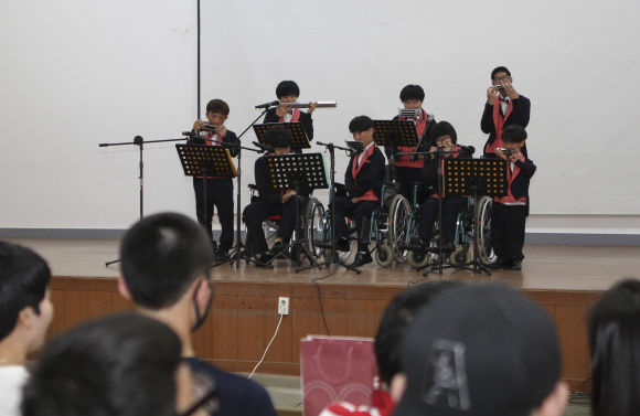 표 氏는 태어날 때부터 양팔과 양다리가 불편한 지체 1급 장애를 가졌지만, 발로 그림을 그리는 구족화가이면서 대구성보학교 맑은소리하모니카 연주단에서 7년째 맏형으로 활동하고 있다.