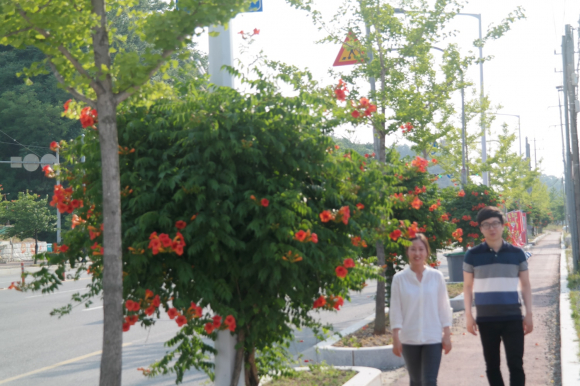 능소화 꽃길은 둑 아래로 낙동강이 흐르고 도심 풍광이 한눈에 들어와 평소 부부와 가족, 연인들이 산책이나 운동하러 많이 이용하는 곳이다.