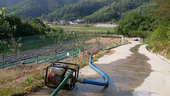 또한, 산과 연접한 지역에는 관용 양수장비 2대를 동원해 하천 굴착으로 모은 물을 0.5㎞이상 다단양수로 용수를 공급해 가뭄극복에 나서고 있다.