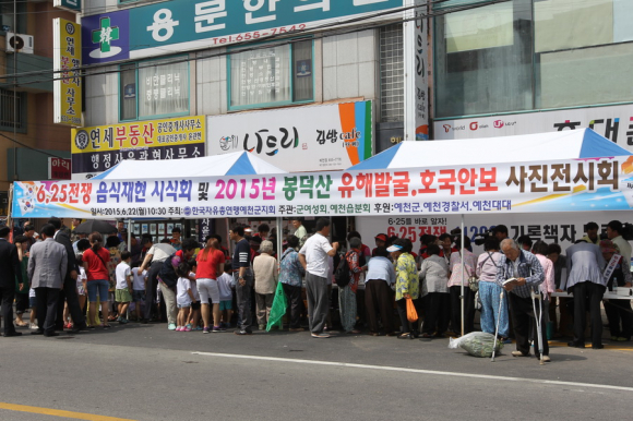 한국자유총연맹 예천군지회(지회장 정홍진)에서는 잊혀져가는 전쟁 당시의 음식을 재현해 22일 오전 10시 30분 천보당사거리에서 6.25 전쟁음식 무료 시식회 및 호국안보 사진전시회를 열었다.
