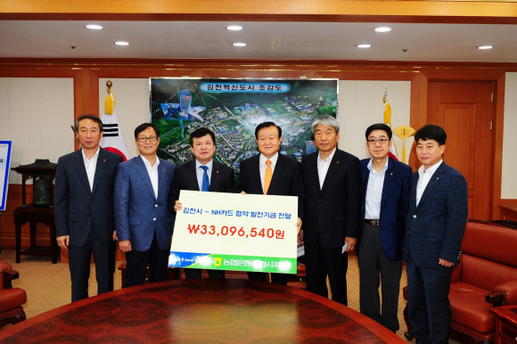 이날 전달받은 발전기금은 농협카드사와 김천시의 신용카드 이용 약정(2011.5.31)에 따른 것으로 법인 제휴카드 사용액에 따라 0.5 ~ 1%의 포인트를 적립하여 연1회 시에 세입조치하고 있다.