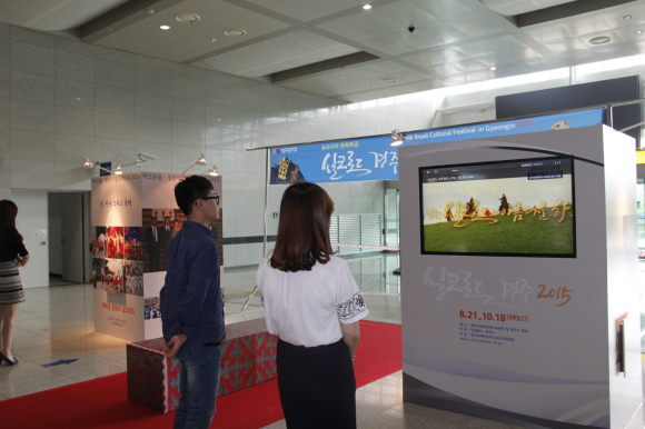 경주엑스포는 지난 19일부터 KTX 포항역에서 ‘실크로드경주2015’ 개최 기념 사진전을 열고 ‘이스탄불-경주세계문화엑스포2013’과 ‘이스탄불in경주2014' 행사 사진, 올해 행사사진과 홍보 배너 등을 설치해 상·하행 연결통로를 오가는 시민들의 시선을 사로잡고 있다.
